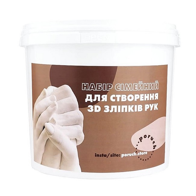 Сімейний набір Poruch дозволяє створити зліпки рук до 4 дорослих людей. Ідеально підходить для збереження спогадів усієї родини, відтворюючи найдрібніші деталі та текстури шкіри кожного члена сім'ї. Виготовляється в Україні з використанням високоякісних європейських матеріалів, що забезпечують безпеку та точність у процесі створення зліпків.