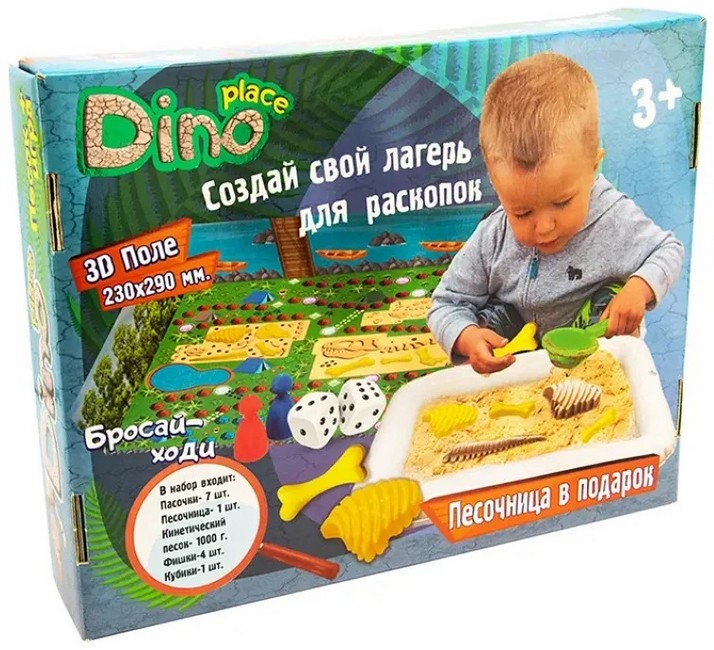 Грати можна в компанії від 2 до 4 осіб. У комплекті: ігрове поле, кубик, 4 фішки, кінетичний пісок і формочки.