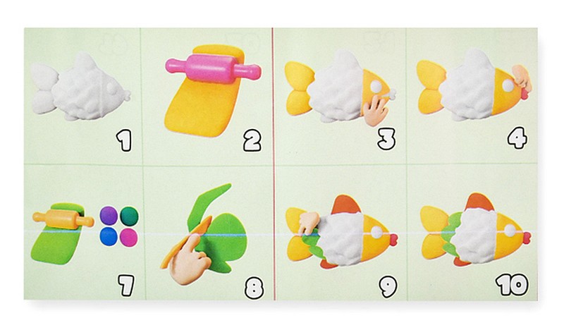 Комплектація: коробка, маса для ліплення - 8 шт., інструменти - 4 шт., основа для ліпки, пакети з застібкою - 3 шт., інструкція