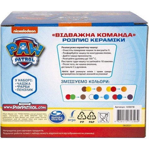 Маленькі художники будуть раді самостійно розфарбувати керамічний кухоль із героями веселого мультфільму "Щенячий патруль".