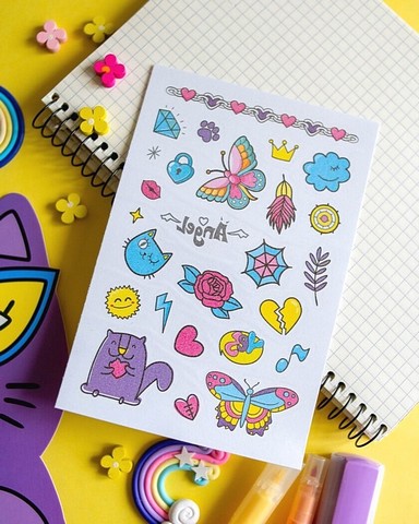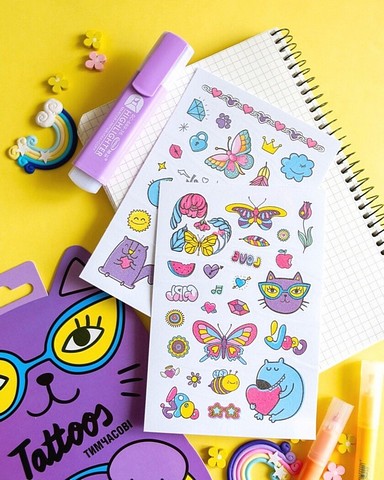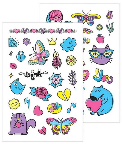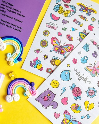 - Татуювання наносяться дуже просто — лише вода та кілька секунд! Тримається добре, але легко змивається теплою водою з милом.
