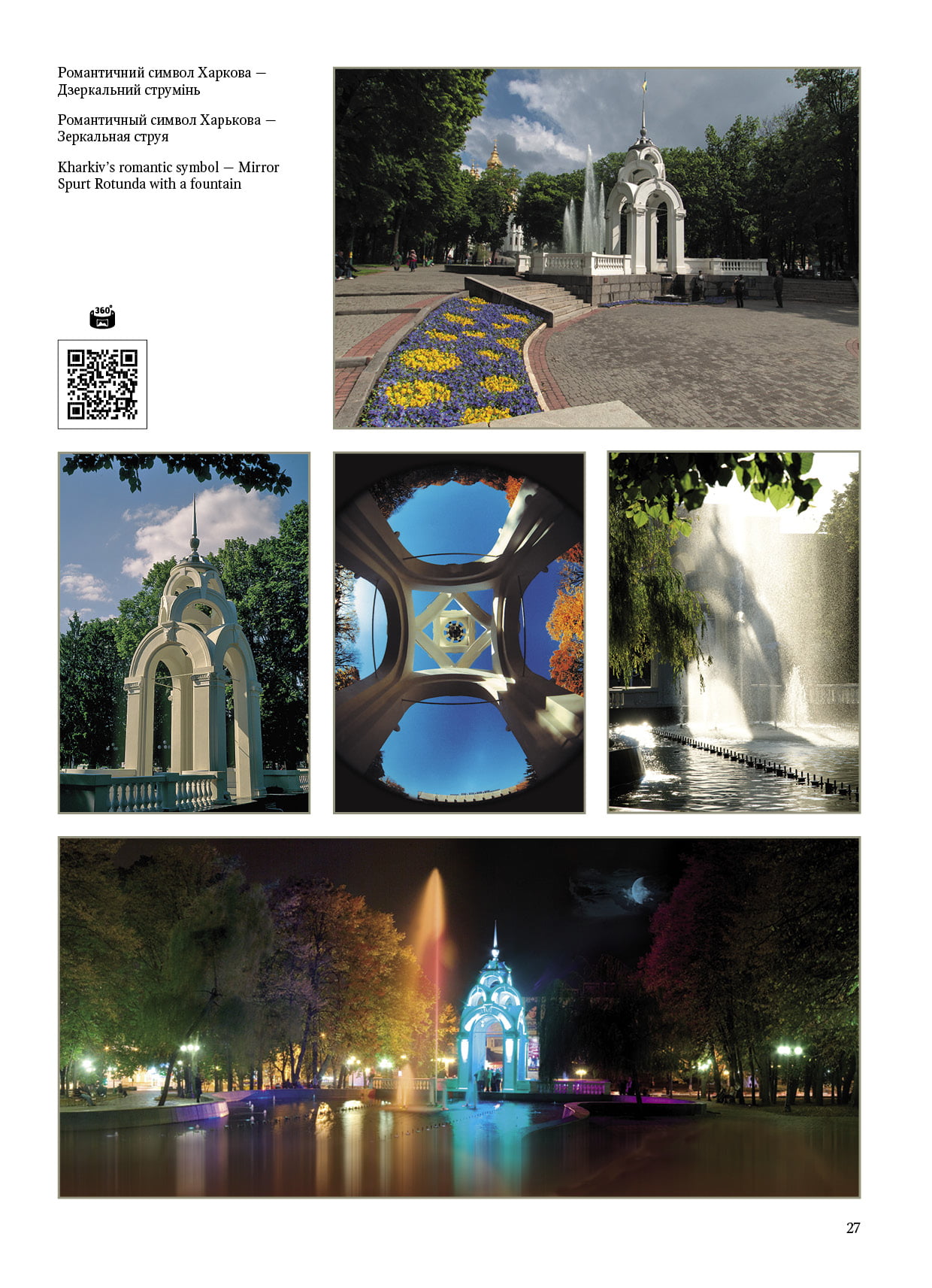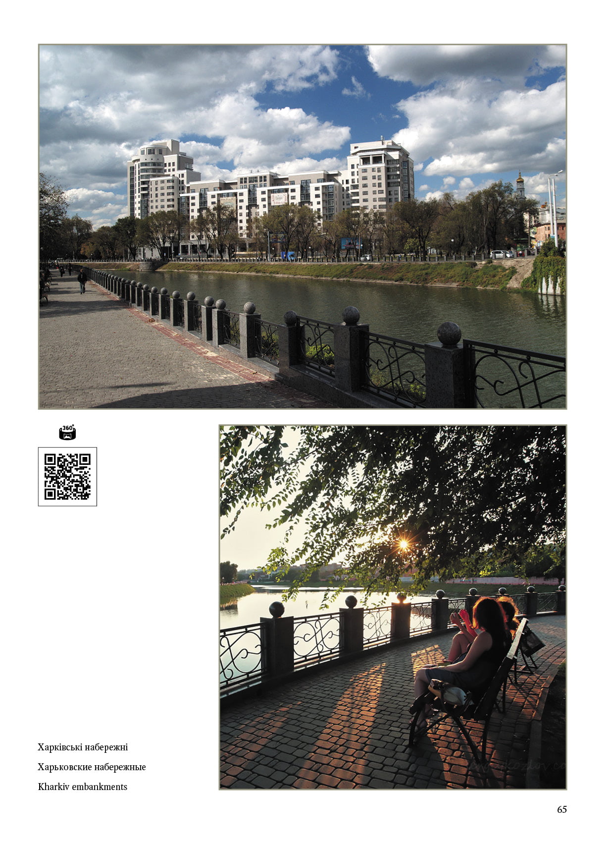 Перейдя по QR-кодам, размещённым на страницах книги, вашему вниманию откроются виртуальные сферические панорамы популярных туристических объектов Харькова с обзором 360°.