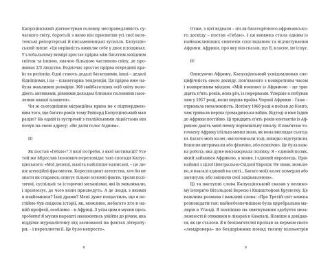 Найвідоміший польський репортажист і загалом один із найбільш читаних польських авторів у світі рано чи пізно мусив, за власним зізнанням, нарешті наважитись увійти до річки, яка відділяє журналістику від заснованої на фактах літератури. Що він і зробив у книжці "Гебан", присвяченій Африці, якої насправді немає. Зате є вбивчі пустелі й життєдайні ріки, непролазні джунглі й безмежні савани з усіма їхніми екзотичними тваринами й рослинами. Але передовсім є люди, які тисячоліттями ведуть боротьбу за виживання у найнесприятливіших умовах. Ось про все це, бачене на власні очі, і розповідає сповненим співчуття голосом Ришард Капусцінський.