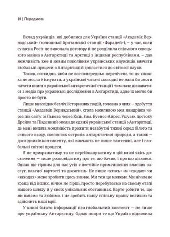 У цій книзі здійснено спробу без замаху на вичерпність синтезувати і передати читачу цілісний світ Антарктики — холодного, скутого льодом, ненаселеного і досі маловивченого краю. Він простягається на континент Антарктиди та Південний океан із безліччю островів. Зануритись у мандрівку дивовижним світом криги та снігу допоможуть неповторні краєвиди регіону, незвичайні пригоди людей, історії відчайдушних першопрохідців, неймовірні наукові дослідження, загрозливі глобальні проблеми, краса живої первозданної природи, яскраві відчуття у подорожі океаном.