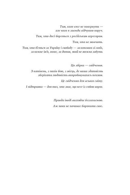 Це тексти, написані між евакуацією поранених, любов’ю і катівнями та перельотами між континентами. Поезія, яка не просить співчуття. Вона — дух епохи.