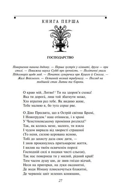 Адам Міцкевич (1798—1855) — видатний польський поет, перекладач, родоначальник нової польської літератури та мови. Його ставлять поруч із Байроном та Ґете. Роль Міцкевича для польської літератури можна порівняти з роллю Шевченка — для української. Життєва доля поета — борця, лицаря, шляхтича — органічно вплетена в історію Польщі та польського національно-визвольного руху. Лейтмотивом його діяльності, як визнає М. Рильський, було «жертовне і дійове служіння вітчизні».