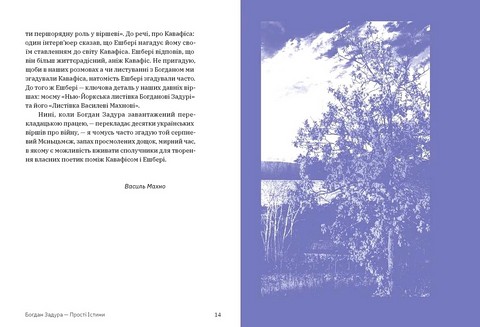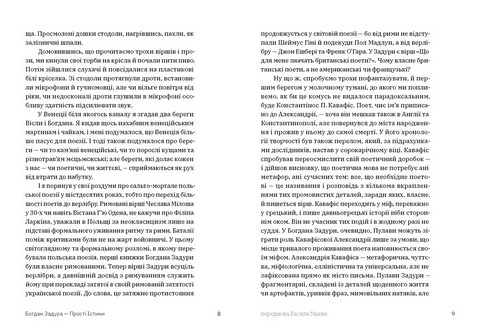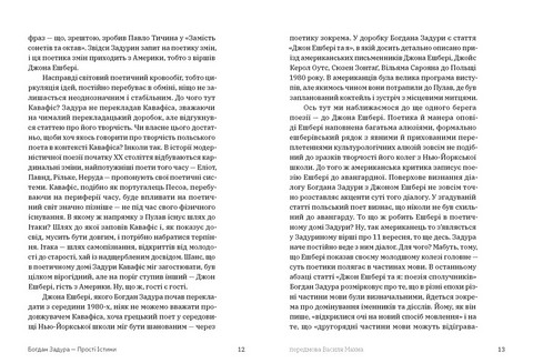 Поетична збірка «Прості істини» Богдана Задури — відомого польського поета, перекладача, прозаїка, літературного критика — потребує глибокого читання, наче глибокого дихання. Але водночас вірші Задури є запрошенням читача до рівноправного діалогу. Його іронічні тексти різних років — часто трагічні, містять безліч алюзій, прихованих цитат і посилань на історичні події, впізнавання яких — особлива читацька насолода та важливий шлях, який кожен мусить пройти з книжкою сам на сам. Завдяки перекладам українською Василя Махна й Анни Грувер ця збірка зберігає інтонацію Богдана Задури і надає можливість відкрити для себе цього легендарного сучасника або продовжити знайомство з його поезією.