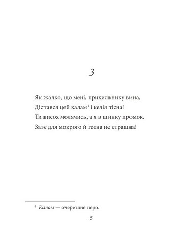 Омар Хаям (1048—1131) — видатний філософ, астроном і математик середньовічного Сходу, який також зажив слави як автор популярних чотиривіршів — рубаї. У бездоганних чотиривіршах Хаяма втілено весь життєвий досвід людини: у них ідеться про сенс буття, про незахищеність людини перед лицем долі й часу, про чарівність швидкоплинних хвилин радості. Омар Хаям зробив жанр рубаї широко відомим.