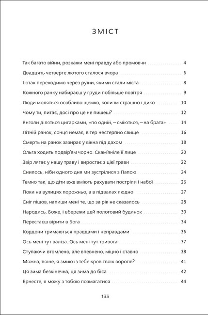 У книжці звучать голоси українців, серед яких читач може впізнати і власний. Кожен проживає війну по-своєму. Але всіх об’єднує воля, що веде крізь темряву і втрати — до свободи, до вільності.