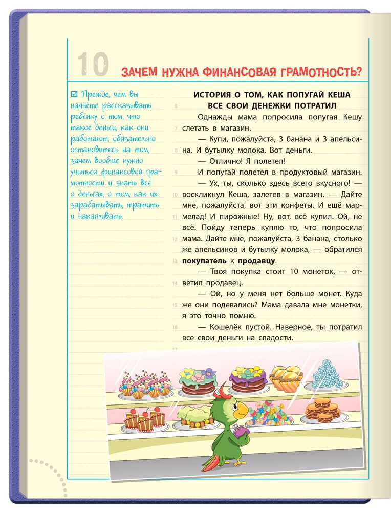 Родители уделяют много времени физическому и интеллектуальному развитию детей: развивающие тетради, секции и кружки. А как насчёт финансовой грамотности? Ваш ребёнок знает, откуда берутся деньги и как рационально ими распоряжаться? Проект «4Mamas» подготовил для вас чудесную уникальную тетрадь «Финансовая грамотность для малышей. Первый шаг к миллиону».В простой и понятной игровой форме вы сможете рассказать о том: • Что такое деньги? • Где и как взрослые их зарабатывают? • Как сберегать деньг