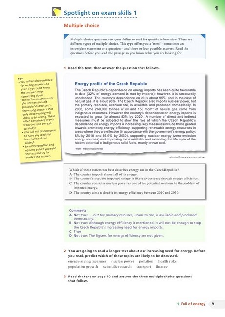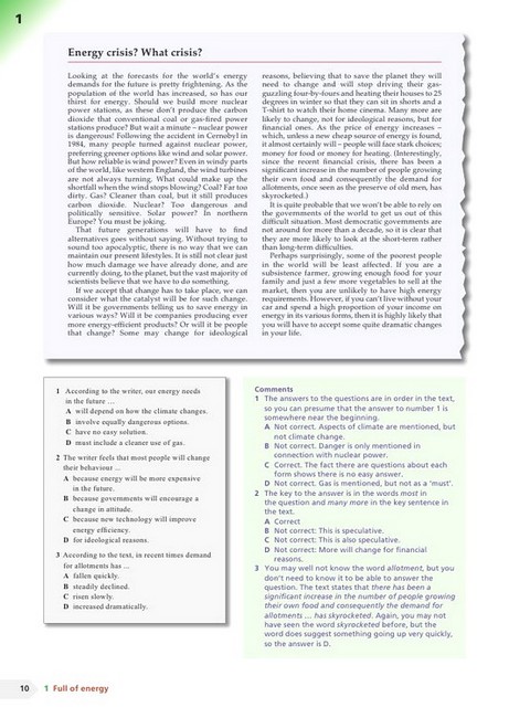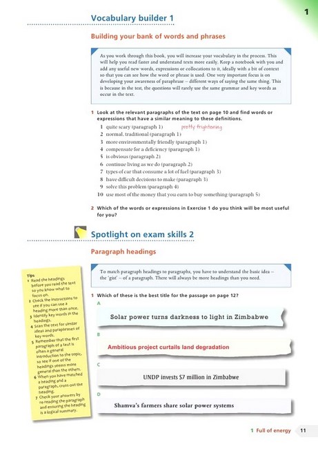 Кожен з десяти блоків містить безліч довгих і коротких текстів, які охоплюють основні теми, які можуть з'явитися на іспиті. Кожен блок розділений на різні розділи, щоб допомогти студентам: дізнатися багато типів різних питань і як до них підходити; розвинути навички, щоб впоратися з кількістю читання в тесті; вивчити стратегії, які допомагають максимально ефективно використовувати час на іспиті; розширити словниковий запас і кількість відомих словосполучень, приділяючи особливу увагу синонімам і парафразам, необхідним для хорошого результату при здачі іспиту.