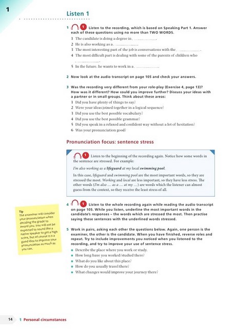 З підручником IELTS ви розвинете навички розмовної мови та аудіювання. Матеріал включає наступні пункти: показує студентам, як давати докладні відповіді, які екзаменатори хочуть почути в мовному модулі; містить безліч аудіо прикладів тестових моделей на компакт-диску; охоплює широкий спектр основних граматичних і словникових навичок, які знадобляться учням для досягнення найкращих результатів на іспиті; консультації по стратегіях для отримання найкращого можливого результату в день іспиту; пояснює формати модуля аудіювання і як на них успішно відповідати; включає матеріал для екзаменаційної практики, що охоплює всі частини модуля аудіювання.