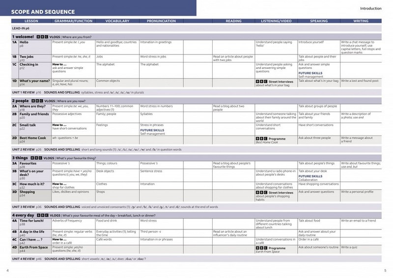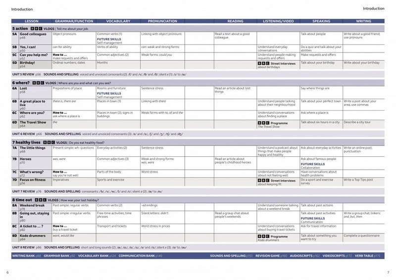 - Два основні вхідні уроки, які охоплюють навички, граматику, лексику та вимову.
