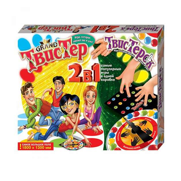 Отличный выбор для большой и активной компании, ведь в одну большую и яркую коробку упакованы целых два развлеченияТвистер Grand - это привычная многим и любимая игра, которая придется кстати на любой вечеринке.