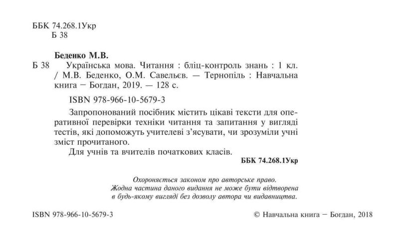 Читання Українська мова Бліц-контроль знань. Запропонований посібник містить цікаві тексти для оперативної перевірки техніки читання та запитання у вигляді тестів, які допоможуть учителеві з’ясувати, чи зрозуміли учні зміст прочитаного.
