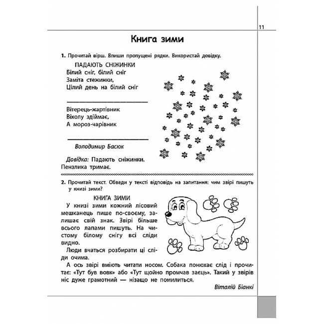 На сторінках посібника учні зможуть познайомитися з такими творами: Чому рипить сніжок, Книга зими, Як білочка зимує, Троє ведмежат і зима, Їдальня для птахів, Закутаний хлопчик та ін.