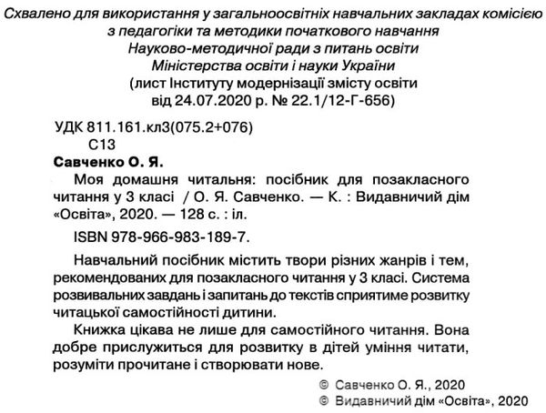 Моя домашня читальня Позакласне читання 3 клас НУШ Савченко О. Освіта