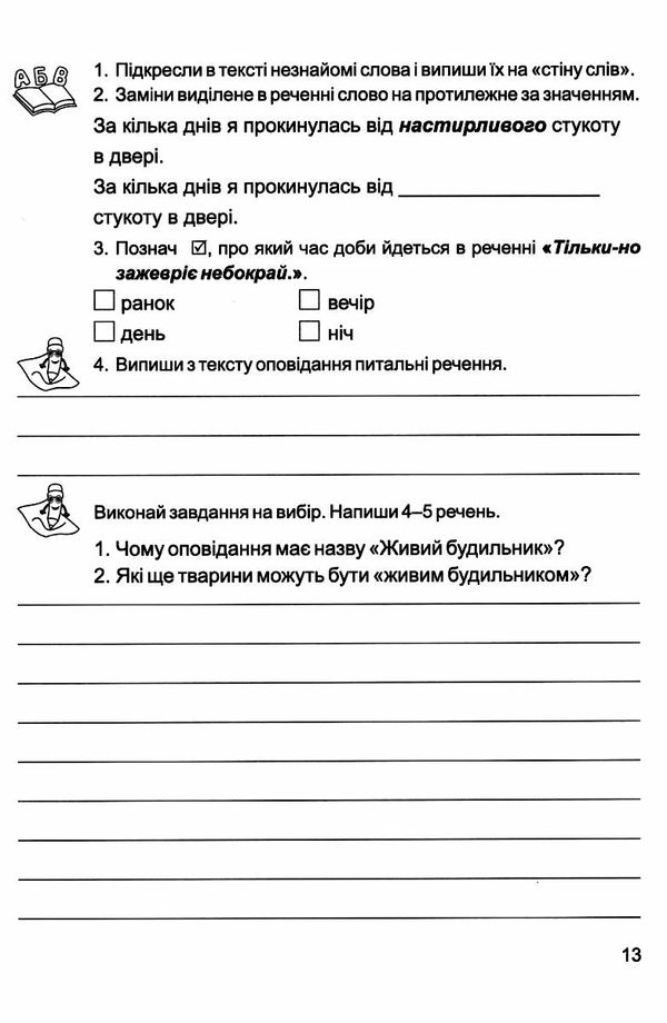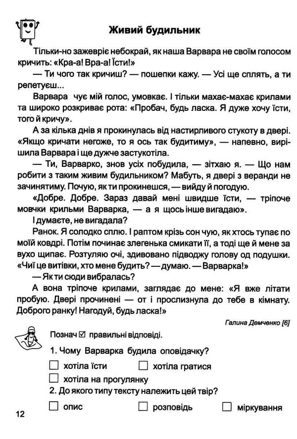 У ньому дібрано твори для самостійного читання, уміщено запитання до текстів, завдання для роботи зі словами та для самостійного письма.