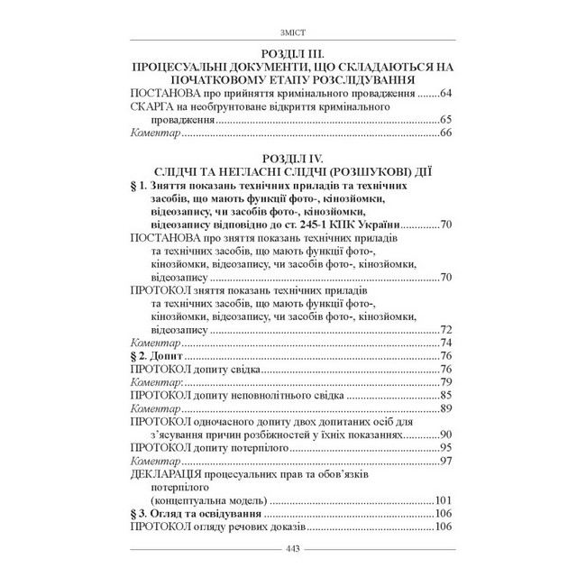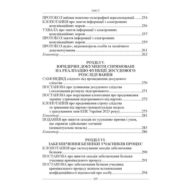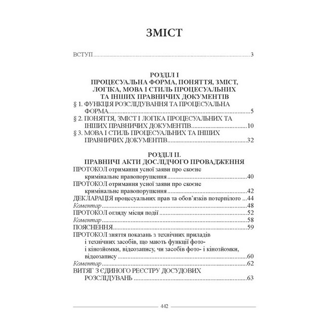 Документи все більше стають рушійною силою юридичних процесів та правовідносин, маркером сучасного державотворення. У цій роботі викладено основні вимоги законодавства щодо юридичних документів слідчого та інших учасників процесу, які складаються у кримінальному провадженні, показані типові структури юридичних актів, розкриті їх логіка, мова і стиль; наводяться зразки основних процесуальних документів.