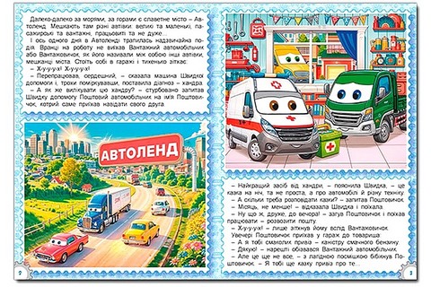 Ваш малюк обожнює казки про автомобілі, вантажівки, автобуси та іншу техніку? Тоді ця книга створена саме для нього! У місті Автоленд мешкають різні машини – швидкі, працьовиті, інколи кумедні, а часом навіть трохи пихаті. Вони, як і люди, радіють, сумують, мріють і навчаються бути добрими друзями. Веселі й повчальні історії допоможуть малечі зрозуміти, що таке справжня дружба, взаємодопомога та важливість правил дорожнього руху. Разом із героями казок дитина вирушить у захопливі пригоди, переживе кумедні ситуації та навіть розгадає кілька таємниць!