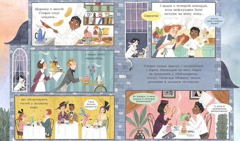 Ця чудово ілюстрована книжка-картинка від нагородженої ілюстраторки Ізабель Фоллат і авторки Кейт Девіс чарівно поєднує мистецтво кулінарії з нотками детективу. На кожній сторінці — тепла атмосфера, яскраві персонажі й безліч затишних деталей, серед яких так легко загубитися.