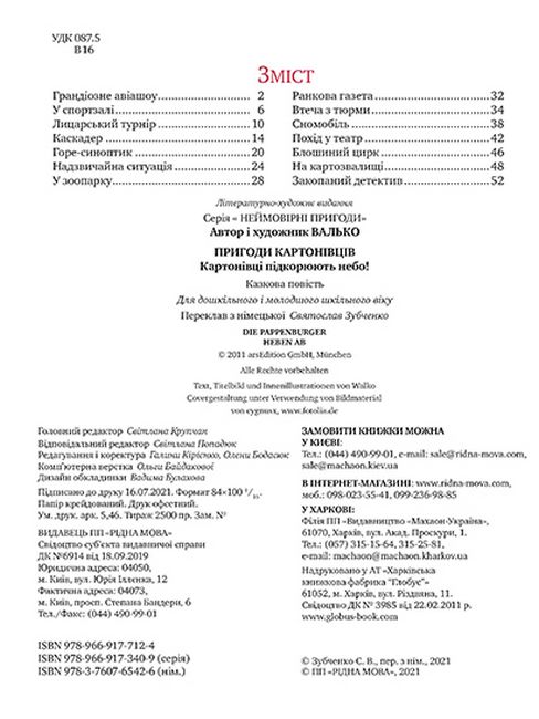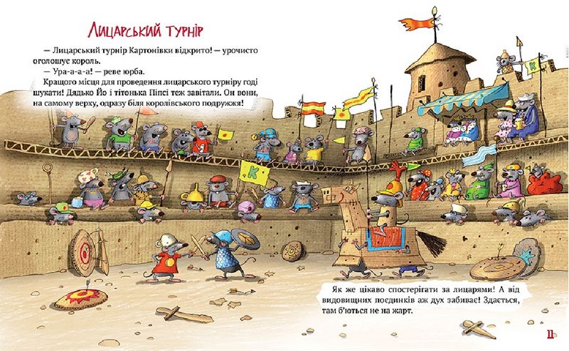 Вони влаштовують авіашоу й лицарські турніри, знімають фільми, їздять на сномобілях і навіть… закопують у пісок видатного детектива! Про це та про інші події в Картонівці читай у веселій та яскравій книжці!