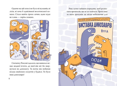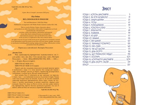 \nДалі можна було б очікувати на що завгодно: на переляк, і страх, і жах — але найменше на веселу й дотепну історію. Однак саме така історія чекає на читачів. Адже те, як милий і наївний динозавр намагався призвичаїтися жити серед людей, як плутався у засобах маскування та різних поняттях, справді дуже кумедно. Іноді Єті, Додо та Нессі, істоти, які вже давно живуть під прикриттям, просто безсило розводили руками. Але все б нічого, якби на Рекса не чатувала справжня небезпека…