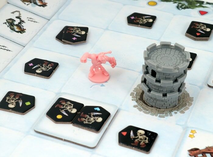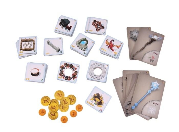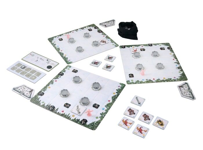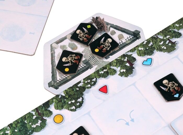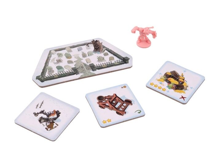Перед началом партии участники получают персональный планшет местности, где размещают составную башню своего королевства с героем и тайлы с домиками. Каждое владение соседствует с кладбищем, а в арсенале для отражения атаки королевичам положено по 6 тайлов с ловушками. Скелеты покоятся в мешочке в центре стола, за исключением тех четырёх на игрока, которым уже не терпится выйти из леса к вашему королевству. Все компоненты игры оформлены в забавном мультяшном стиле.