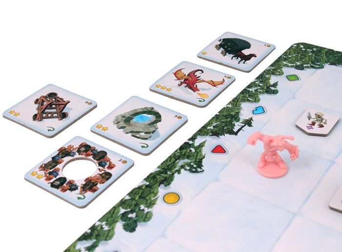 Во второй фазе вы можете подготовить или убрать уже использованные и ненужные ловушки. В базовой игре временно сдерживать атаки помогут стены, катапульта, дракон и сокровище. Все тайлы ловушек двусторонние, кроме сокровища, одна сторона изображает целую ловушку, другая – повреждённую. Выкладывать новые ловушки можно на свободные клетки планшета или туда, где находится герой, кроме башни. Некоторые ловушки могут требовать особых правил размещения. Убирать можно как повреждённые ловушки, через которые прошли скелеты, так и целые. После попадания в запас ловушка обновляется и может быть использована снова.