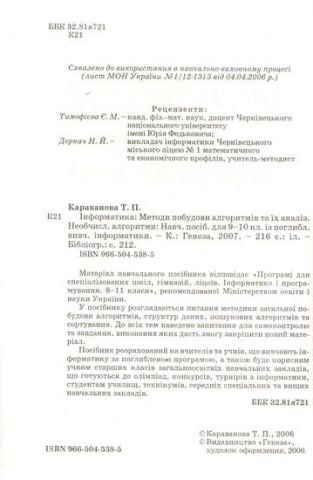 Методи побудови алгоритмів та їх аналіз. Необчислювальні алгоритми. Караванова Т. П. 96601