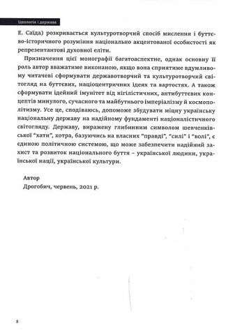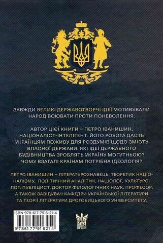 Нова монографія відомого українського вченого, політичного аналітика та публіциста Петра Іванишина присвячена націософському тлумаченню ролі базових ідеологіи? (суспільних світоглядів) у постанні та функціонуванні державного (політичного) буття. Відповідно до національної свободи як основоположної суспільної вартості, автор виділяє три типи фундаментальних світоглядів та відповідних їм типів політичної свідомості – імперіалізм, космополітизм і націоналізм. Він також наводить численні приклади побутування культурних та політичних ідеї і практик та наслідків їх реалізації в різних типах політичних систем – державах-імперіях, космополітичних державах-неоколоніях та національних державах. Праця сприяє формуванню самостійного критичного мислення в ідеологічній, політичній та культурній сферах. Книга досліджує поняття націоналізму, імперіалізму, лібералізму та інших ідеологій, які впливають на формування держави та суспільства. Автор наголошує, що націоналізм – це не лише політична ідеологія, а й спосіб життя, який формує культуру, цінності та погляди нації. Він досліджує історичне коріння націоналізму та його вплив на розвиток сучасної держави та на майбутнє України. Проте, слід зазначити, що книга містить складну мову та теоретичні концепції, тому може бути важкою для непрофесійних читачів або тих, хто не має попереднього досвіду з вивчення ідеологій та політичних теорій. Тому вона буде цікава науковцям і студентам політології, історії та філософії, а також тим, хто бажає зрозуміти роль ідеології націоналізму у формуванні сучасної політики. У цій книзі автор звертається до праць мислителів минулого, зокрема Дмитра Донцова, Івана Франка, Джозефа Ная та Ганса Морґентау. Він проводить історичні паралелі та відповідає на важливі питання сьогодення за допомогою досвіду минулого. Монографія Петра Іванишина «Ідеологія і держава: націософська інтерпретація» розповідає про складні для середньостатистичного читача теми. Однак ніколи не пізно розширювати власні знання у будь-якій сфері, зокрема в соціології та політології.