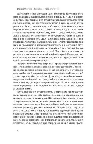 У книжці подано результати ґрунтовного дослідження різних форм нерівності та ідентичностей, джерел фінансових криз, деградації еліт, технологій маніпулювання населенням, порівняння лібералізму з ідеологіями в сучасних автократіях. Ця книжка корисна для розуміння політичної, економічної та соціокультурної мап світу, переваг і вразливостей популярних нині суспільно-політичних теорій, а також підводних каменів, які трапляються на шляхах демократичних країн.
