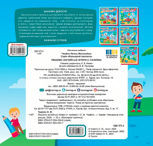 Кольорові прописи Пишемо англійські літери Авт: Чхайло О.М. Вид-во: Торсінг 100683