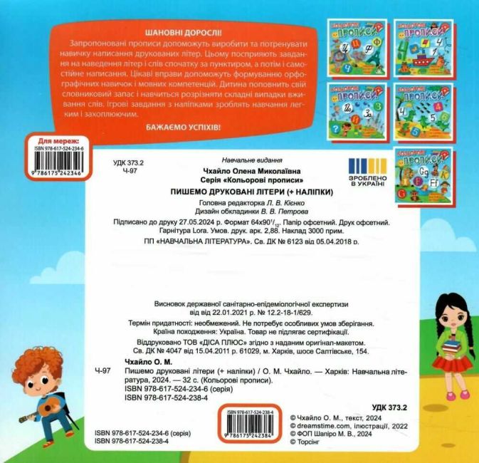 Кольорові прописи Пишемо друковані літери Авт: Чхайло О.М. Вид-во: Торсінг 100680