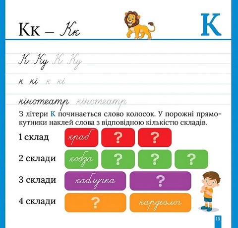 Прописи допоможуть виробити та потренувати навичку письма в широку лінію. Цьому посприяють завдання на наведення літер і слів спочатку за пунктиром, а потім і самостійне виконання.