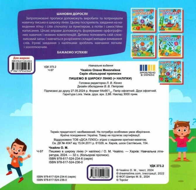 Кольорові прописи Пишемо в широку лінію Авт: Чхайло О.М. Вид-во: Торсінг 100679