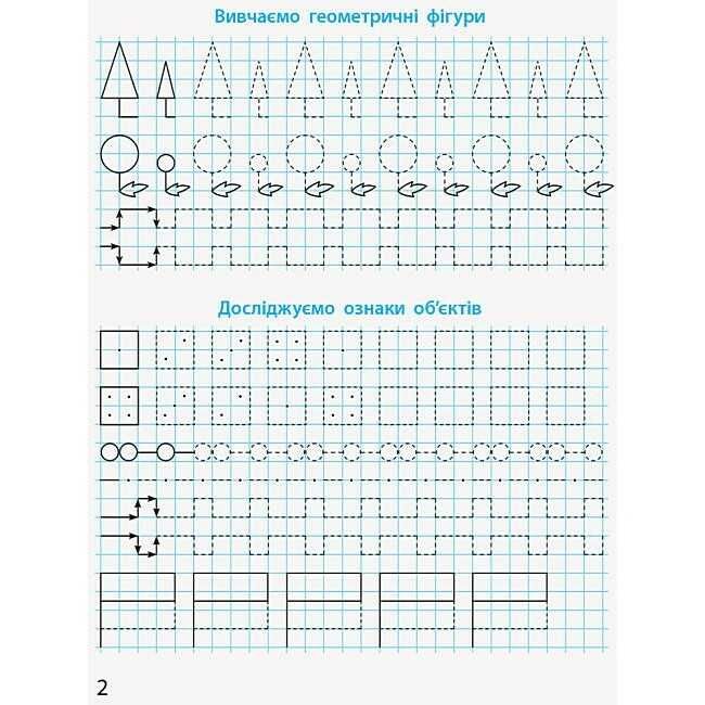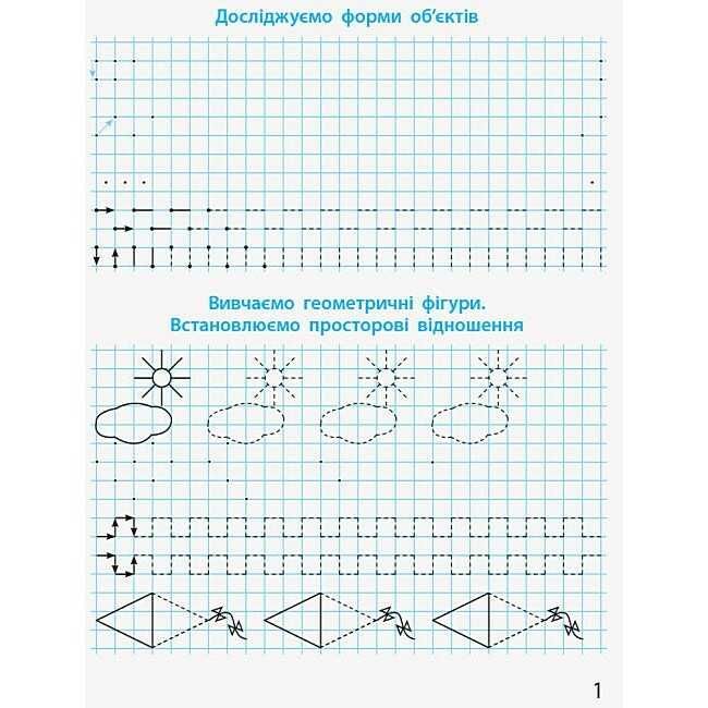 Математичні прописи 1 клас НУШ. Система завдань, поданих у посібнику, спрямована на формування графічних навичок першокласників, навичок написання цифр, у тому числі в учнів, які пишуть лівою рукою, на розвиток дрібної моторики, просторової уяви та орієнтування на площині зошита.