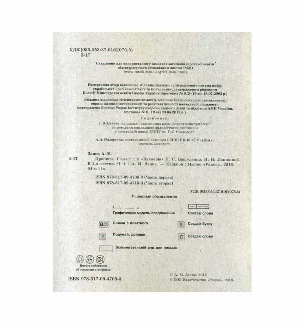 Прописи 1 класс Часть 1 НУШ к Букварю Вашуленко Н.С. Лапшиной И.Н. Авт: Заика А.М. Изд-во: Ранок 19956