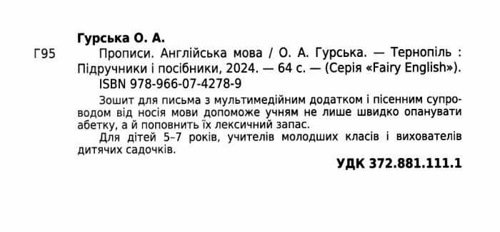 Прописи Англійська мова Авт: Гурська О.А. Вид-во: Підручники і посібники 101355
