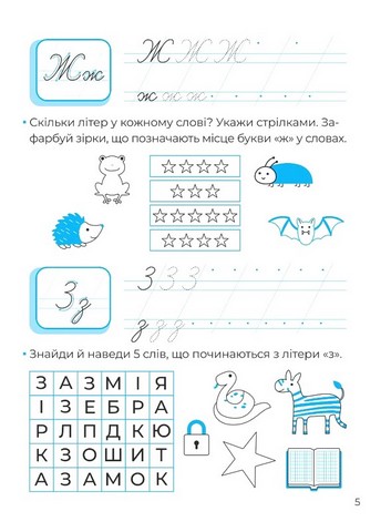 \nЦі книжечки будуть дуже корисні для тих маленьких школяриків, які зовсім нещодавно пішли до першого класу і/або пишуть ще не зовсім охайно — а практики у школах не вистачає. Логічні завдання тут легкі та цікаві — тож дітки самостійно зможуть виконувати їх, заодно обводитимуть пунктирні лінії цікавих форм та вклеюватимуть наліпки.
