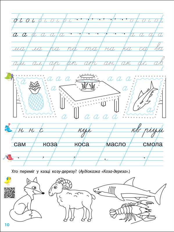 Тренувальний зошит Прописи-шаблони 1 клас 1 частина Коваль Н. АРТ. Вчимося писати правильно. Пишемо букви, прописуємо з?єднання, пишемо слова з різними видами з?єднань, списуємо слова і речення. Виконуємо мовні вправи. А також тренувальні вправи на штрихування, обведення, розфарбовування. Аудіоказки та ігрові завдання до кожної казки.