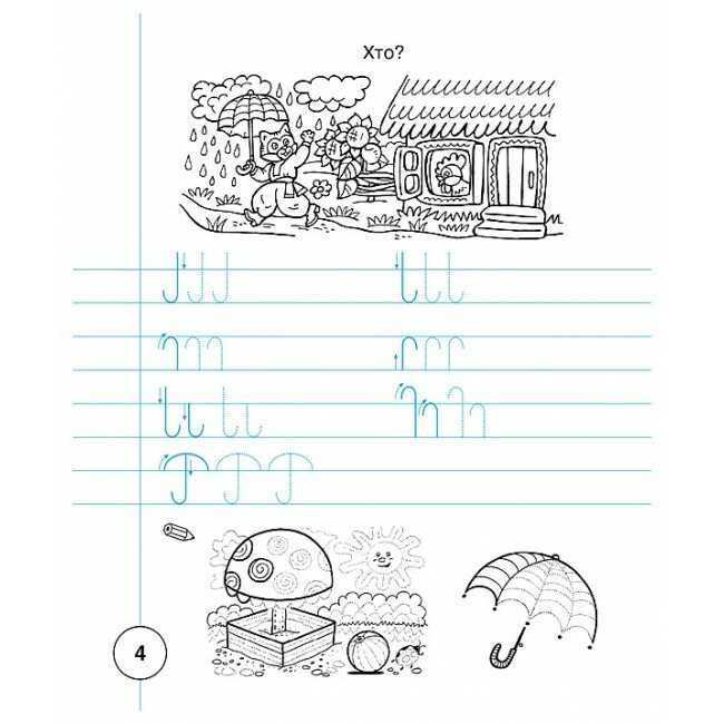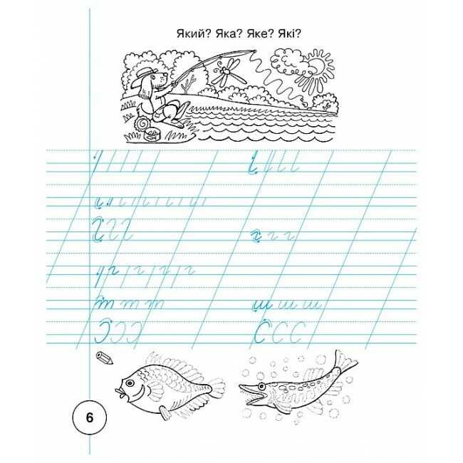 У Прописах дві частини, Частина 1 подано зразки написання рядкових і великих літер української абетки, що відповідають Єдиним зразкам каліграфічного письма букв та їх з’єднань, затвердженим МОН України. У зошитах запропоновано шаблон похилі лінії, розміщені на відстані ширини рядкової літери, виділено нижню рядкову лінію, наведено елементи кожної літери та послідовність її накреслення. Для закріплення навичок каліграфічного письма подано різні варіанти з’єднань уже вивчених букв, зразки написання окремих слів й коротких речень (друкованим шрифтом) для списування, а також сторінки з калькою. Сюжетні малюнки служитимуть матеріалом для побудови звукових моделей слів, допоможуть у складанні речень. На звукових схемах блакитним кольором виділено звук, який вивчається. Цікавим нововведенням є кольорова вкладка. Дитина має можливість знайти наклейку-ілюстрацію до запропонованої звукової моделі і наклеїти зображений фрагмент сюжетного малюнка.