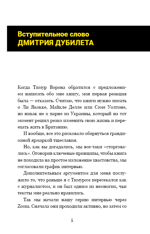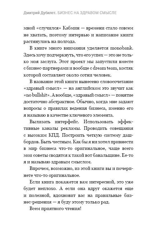 Дмитрий Дубилет — один из наиболее популярных украинских бизнесменов. В своей первой книге он рассказал о том, как воплотить бизнес-идеи в жизнь, создание команду, которая приведет к успеху, как увеличить продажи. История побед и ошибок Дмитрия Дубилета – сооснователя первого мобильного банка в Украине «monobank», бывшего IT-директора «ПриватБанка», экс-министра Кабинета Министров.