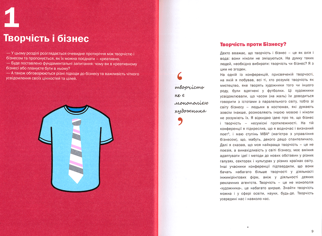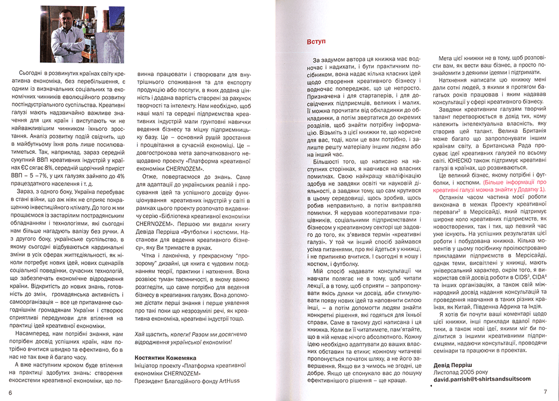 Книжку “Футболки та костюми” не лише цікаво читати, вона – цінний інструмент для будь-кого, хто починає свій бізнес у креативному секторі або переживає у ньому не найкращі часи.