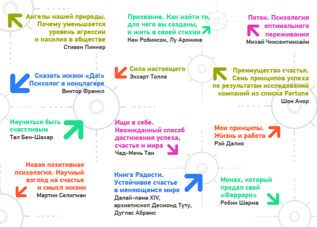 - «Преимущество счастья. Семь принципов успеха по результатам исследований компаний из списка Fortune» Шона Ачора