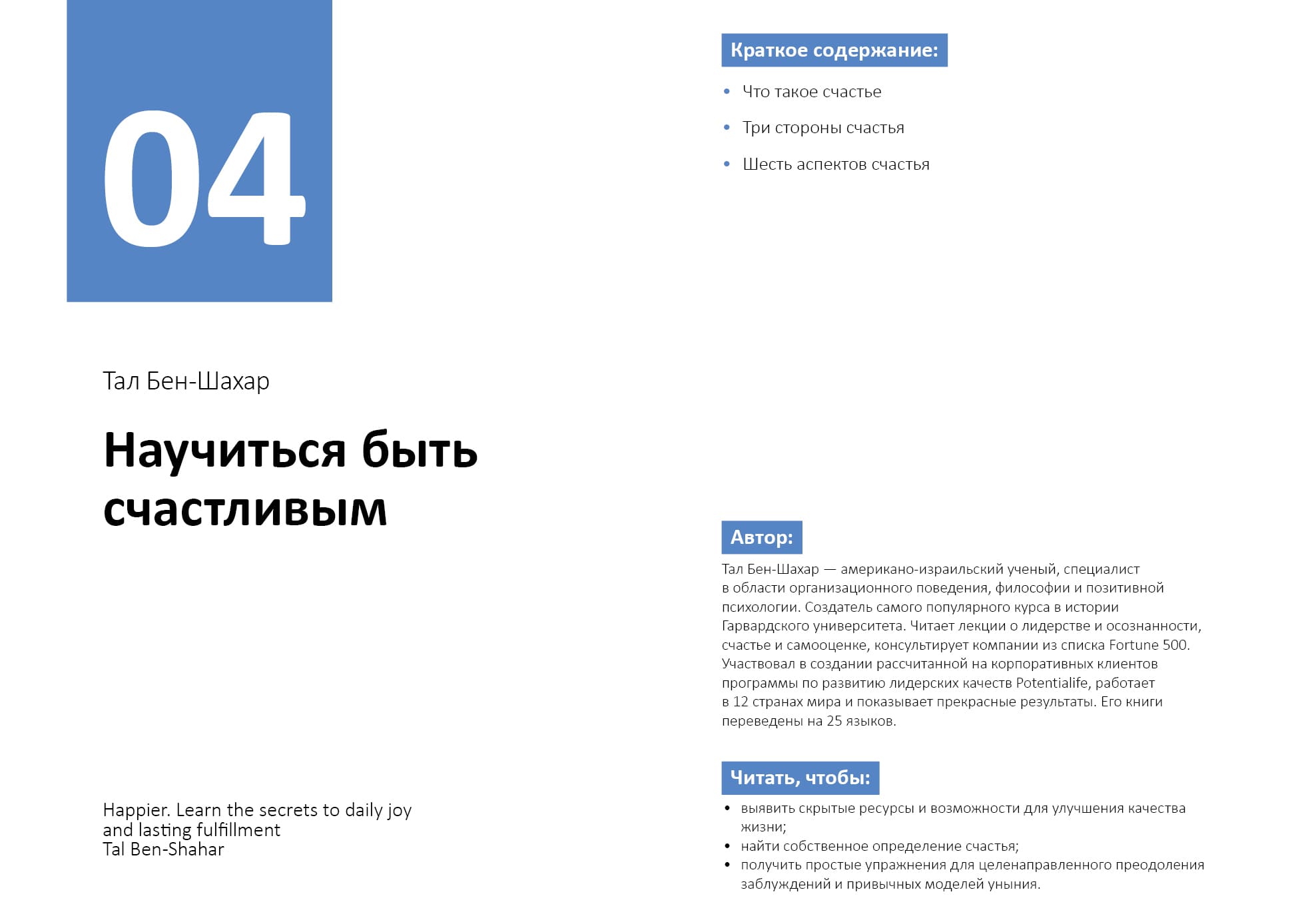 - «Научиться быть счастливым» Тала Бен-Шахара
