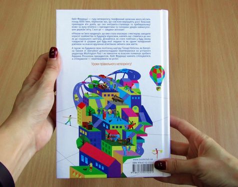«Ніколи не їжте наодинці», — одна з порад, яку він дає у своїй книзі, що стала бестселером 2005 року за версією The New York Times. Ставитися до знайомств як до соціального капіталу, який поліпшить ваше життя, але найголовніше — будувати стосунки щирі, відверті та не боятися дати більше, ніж можеш отримати, — таке перше правило нетворкінгу. Як будувала свою політичну кар’єру Гілларі Клінтон та як Катерина Ґрехем зі звичайної домогосподарки перетворилась на успішного редактора Washington Post, як навчання на власних помилках зробило Авраама Лінкольна президентом, а величезне коло особистих контактів Вернона Джордана — найуспішнішим чорношкірим адвокатом Америки? Кейт Феррацці навчить спілкуватися, а спілкування — перетворити на успіх.