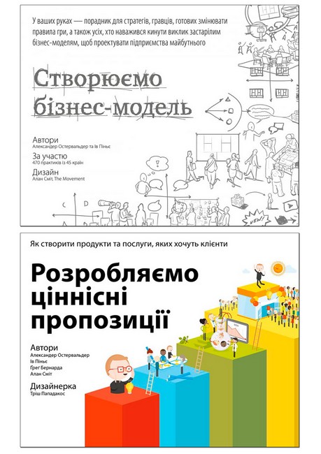 Доктор Александр Остервальдер – один з авторів книжки «Розробляємо ціннісні пропозиції» пропонує покрокові дії для розробки й поліпшення ваших продуктів і послуг. У книзі містяться чіткі визначення, приклади та величезна кількість практичних вправ, які ви можете виконати, щоб краще позиціонувати себе в своїй компанії або як підприємця.