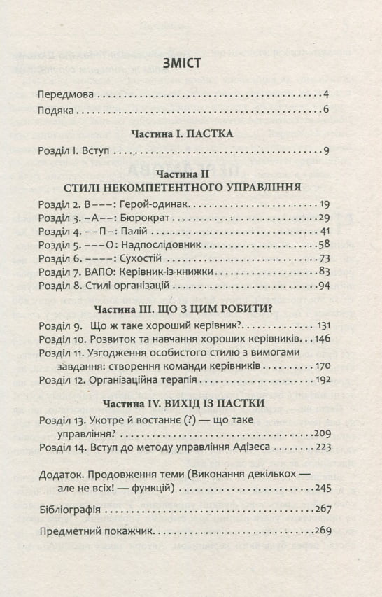 Його напрацювання дають змогу кардинально змінити робочий процес, зробити будь-який конфлікт конструктивним, а будь-яку проблему — кроком до успіху. Іцхак Адізес аналізує різні стилі управління і визначає найважливіші помилки і прорахунки, яких припускаються керівники, а відтак надає практичні поради щодо принципів управління, які діють у реальному житті.