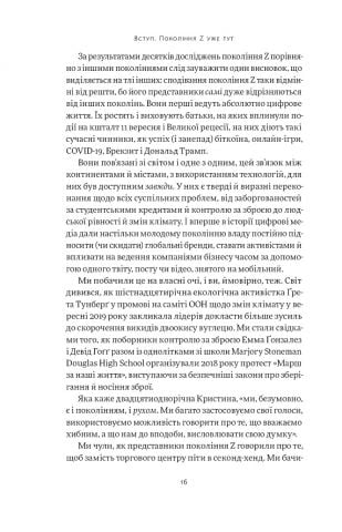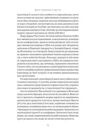Покоління Z змінює все. Бізнеси, до яких ми звикли, переважно не пристосовані продавати чи просувати продукти так, як покоління Z звикло купувати. Компанії зазвичай залучають нових співробітників не там, де покоління Z шукає роботу, а ейчари, старші на 20 років, не завжди розуміються на тому, чого це покоління потребує й очікує від роботодавця та старших колег. Компанії, які швидко зрозуміють особливості покоління Z, адаптуються і зуміють здобути його лояльність, очолять свої галузі на наступні 15–20 років. Усі, хто не зуміє перебудуватися, неминуче вимруть. Усім нам необхідні ці нові знання уже сьогодні, адже саме зараз, дорослішаючи, покоління Z стає часткою ринку праці та групою споживачів, що зростають найшвидше.